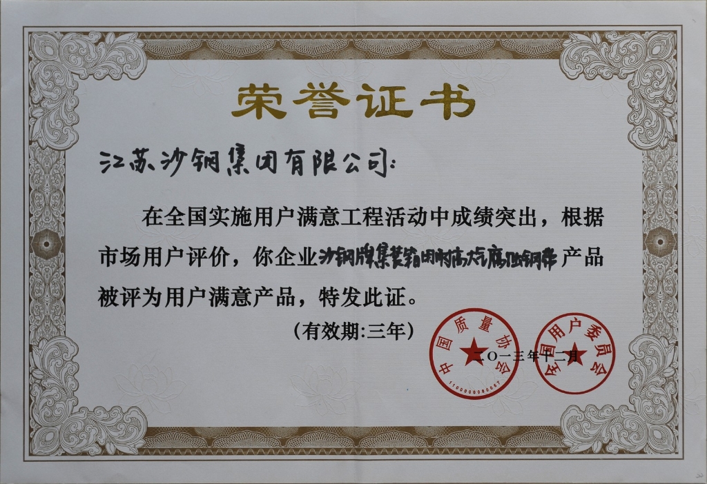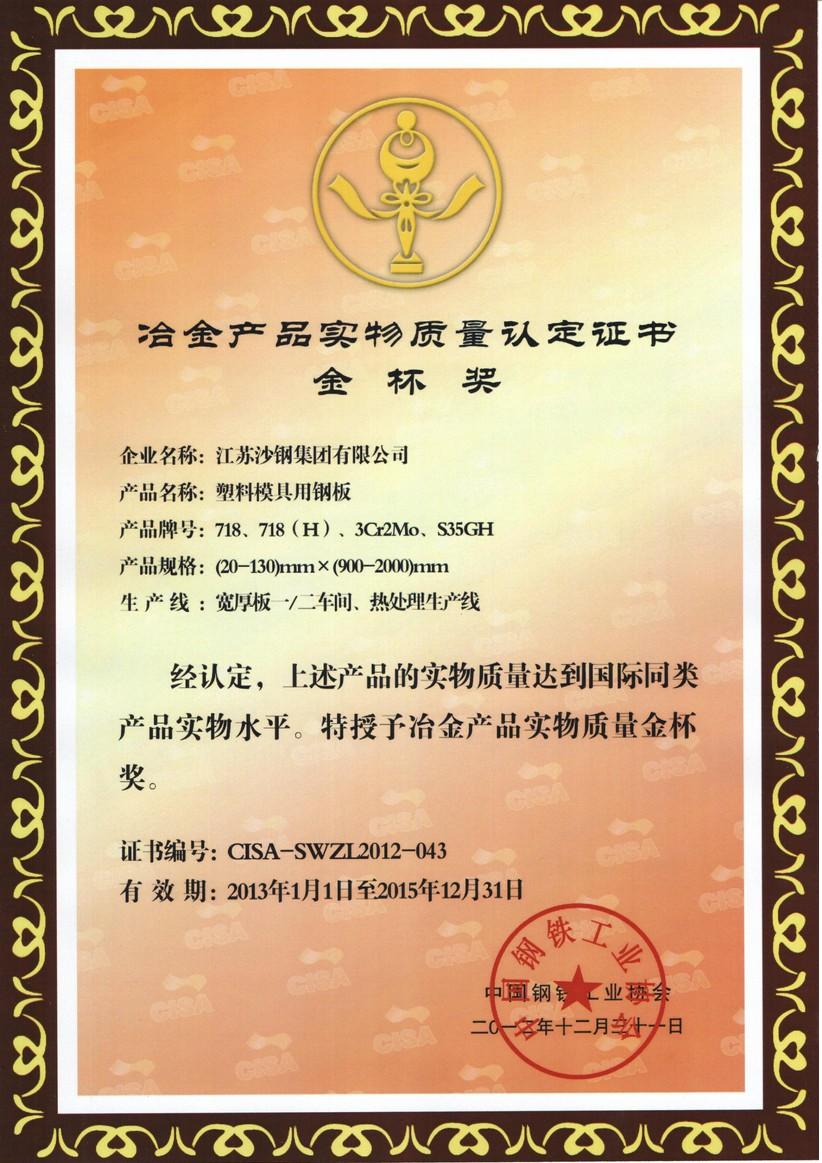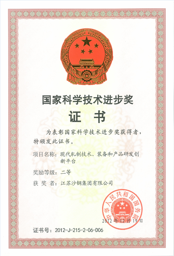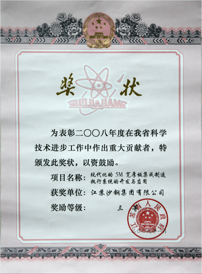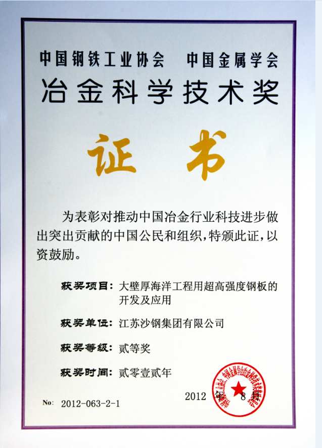 2014年度江苏省科学技术奖三等奖——海洋工程用调质热处理钢板的开发
