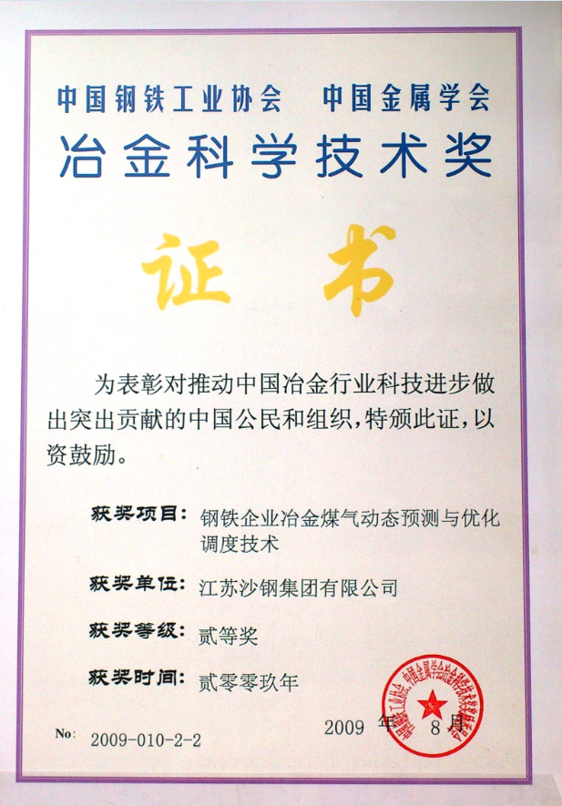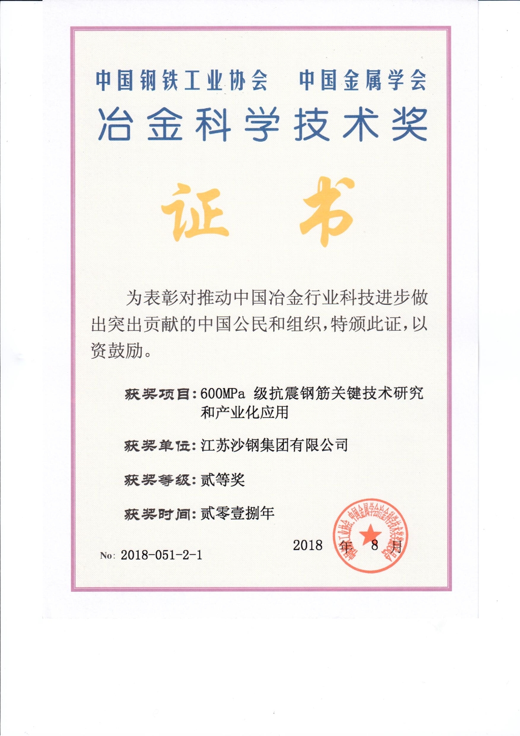 冶金科学技术奖二等奖——600MPa级抗震钢筋关键技术研究和产业化应用