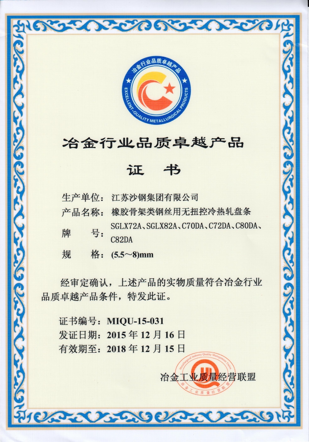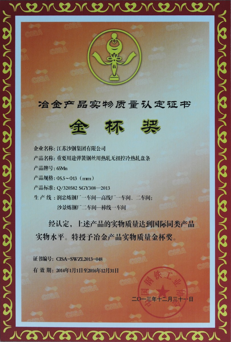 2014年度江苏省科学技术奖三等奖——高性能焊丝钢开发及工业应用