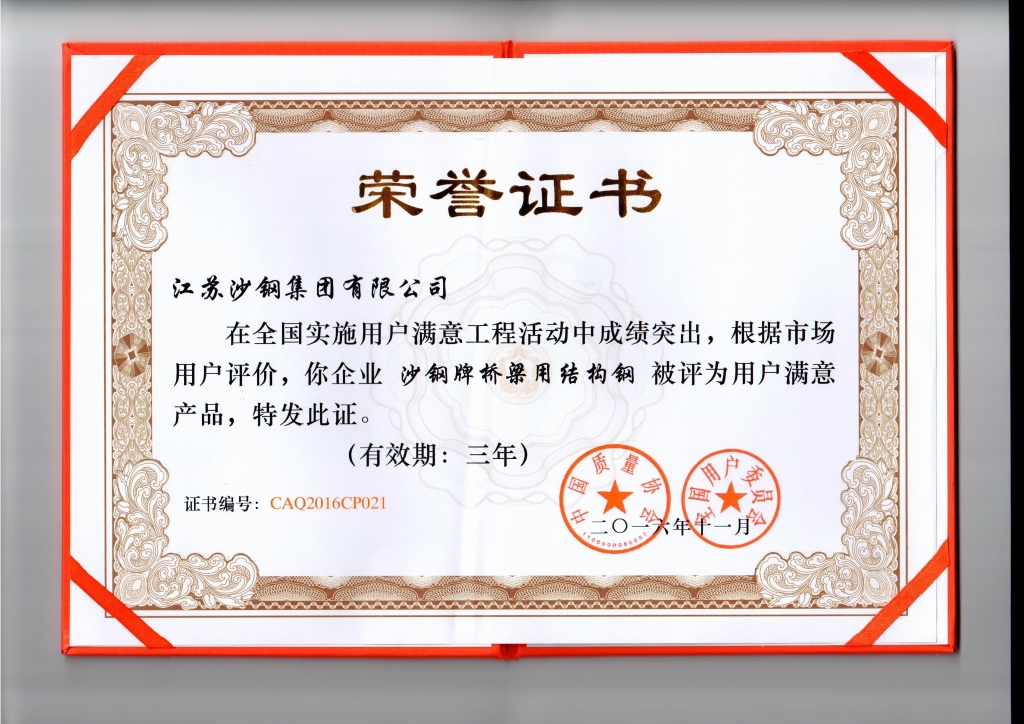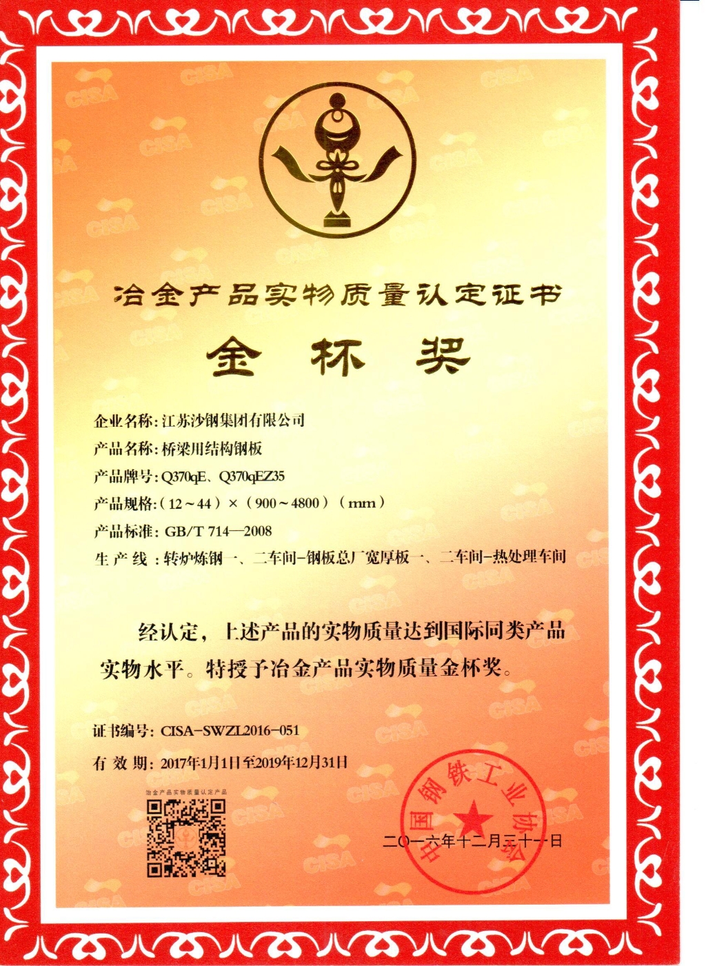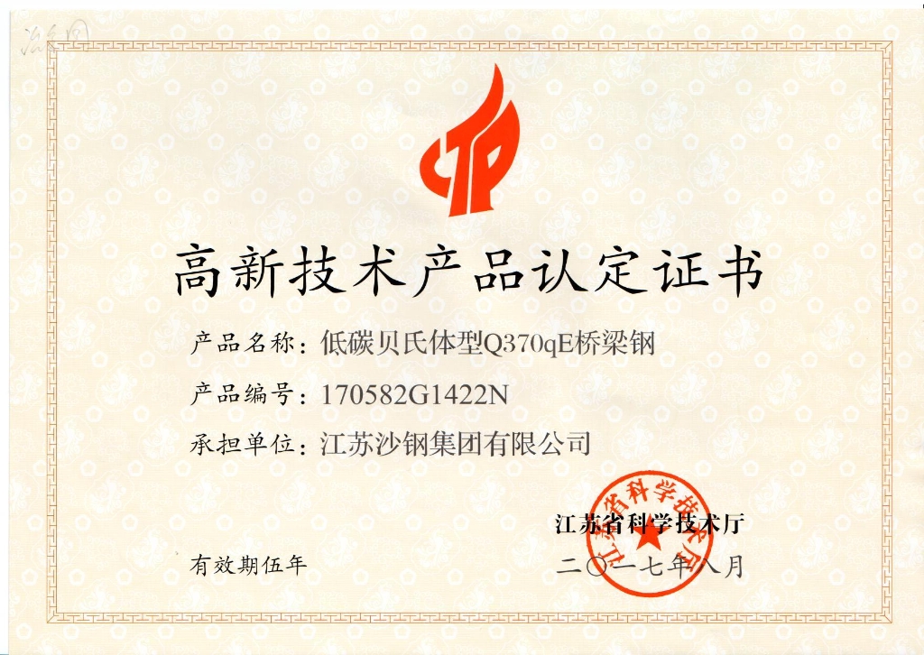 高新技术产品认定证书——低碳贝氏体型Q370qE桥梁钢